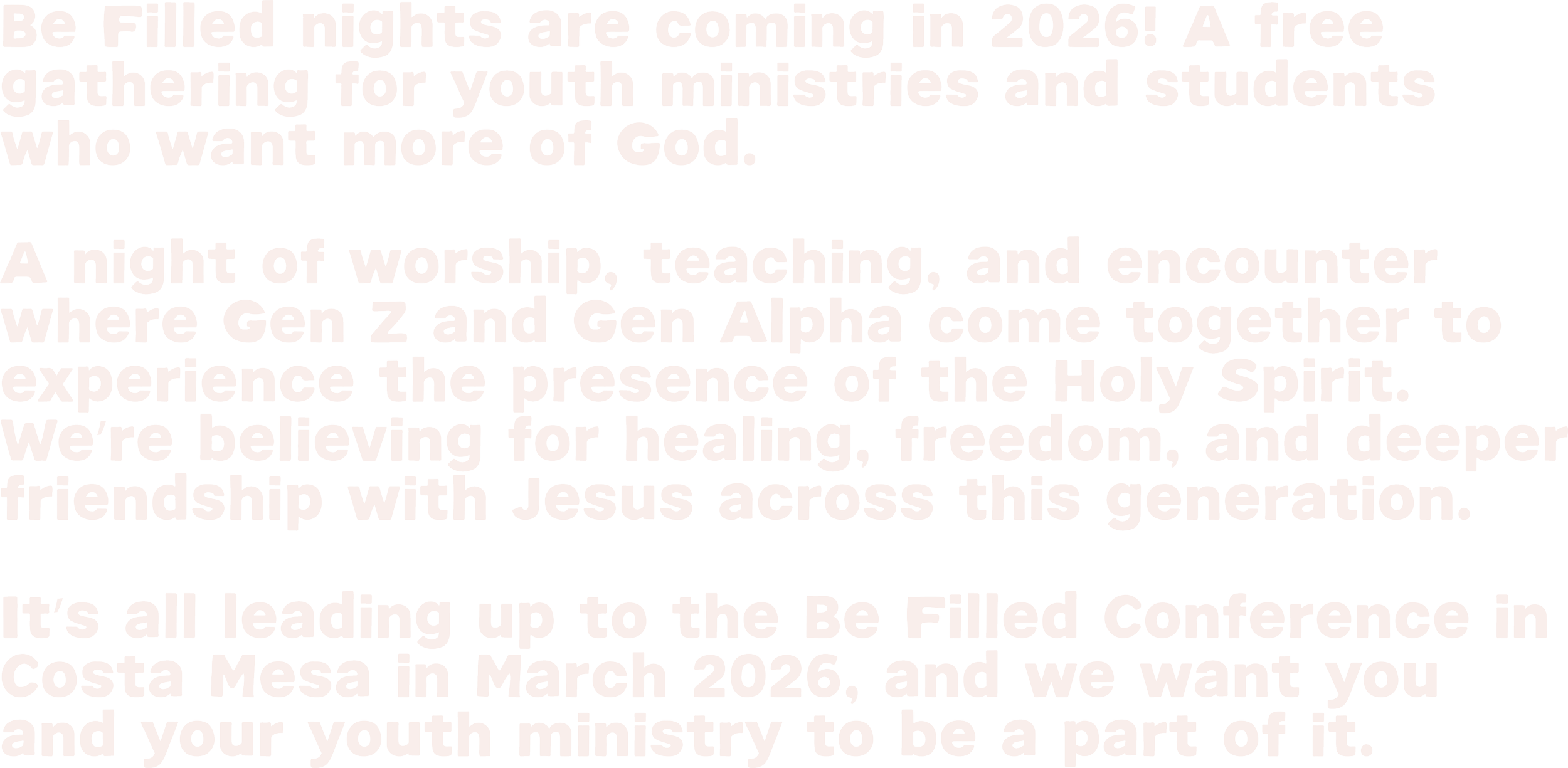 Be Filled Youth Conference is an expression of Garden Church's youth ministry in Huntington Beach, California.